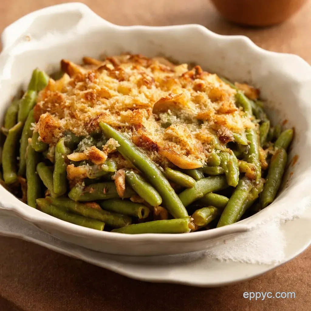Presentation matters, doesn't it? Don't just slap this gourmet green bean casserole on a plate. Give it some love! A sprig of fresh thyme, a sprinkle of extra crispy fried onion topping , and a nice serving spoon can elevate the entire experience.