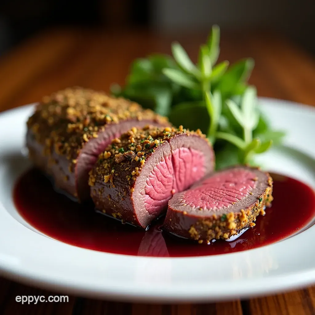 The Crown Jewel HerbCrusted Roasted Beef Tenderloin with Red Wine Jus